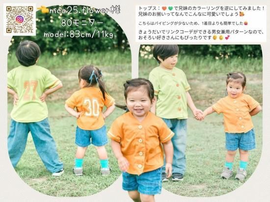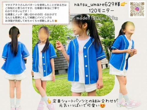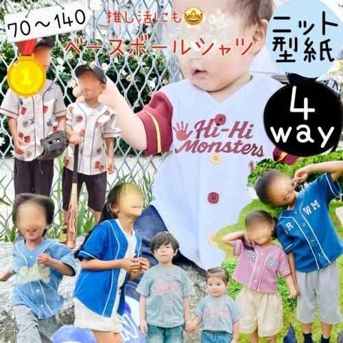 4種類のデザインが楽しめるベースボールシャツの型紙です。