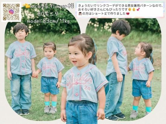 野球シャツ風のカジュアルな雰囲気は普段着にもぴったり☆