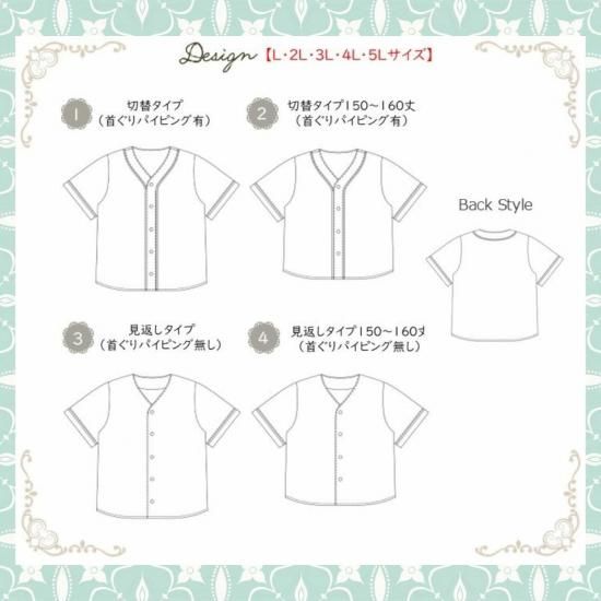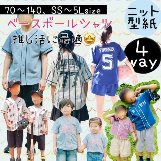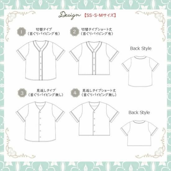 4種類のデザインが楽しめるベースボールシャツの型紙です。